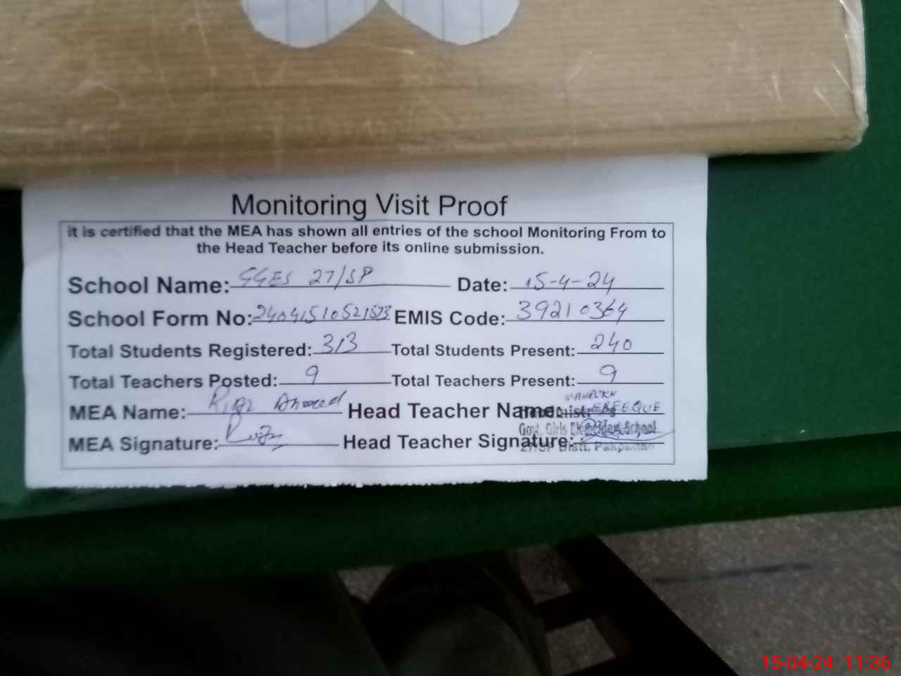 | EMIS Code: 39210364 | Name of School: GGES 27 SP | |||