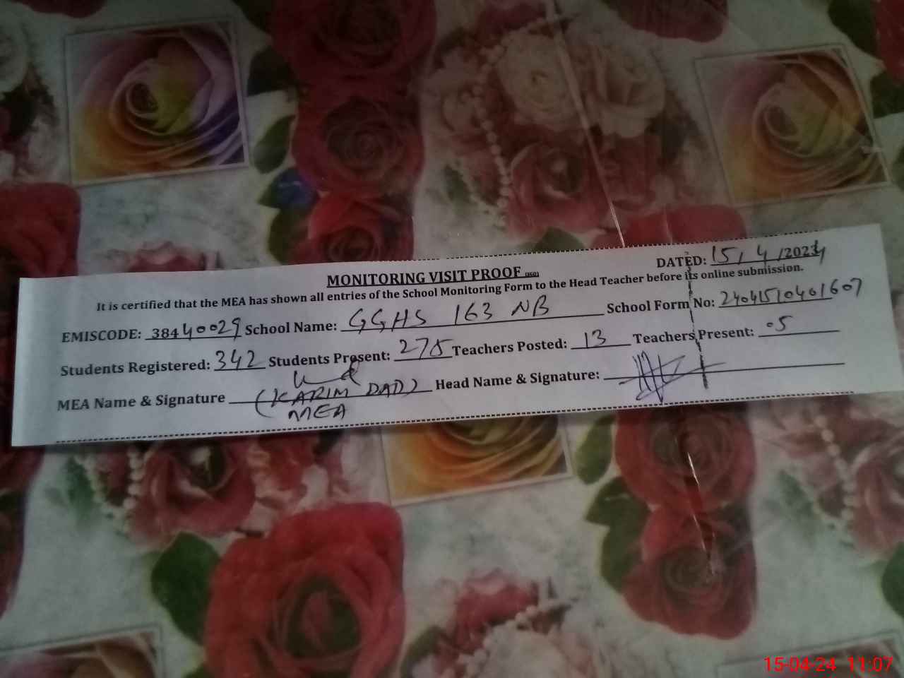 | EMIS Code: 38440029 | Name of School: GGHS CHAK NO. 163 NB | |||