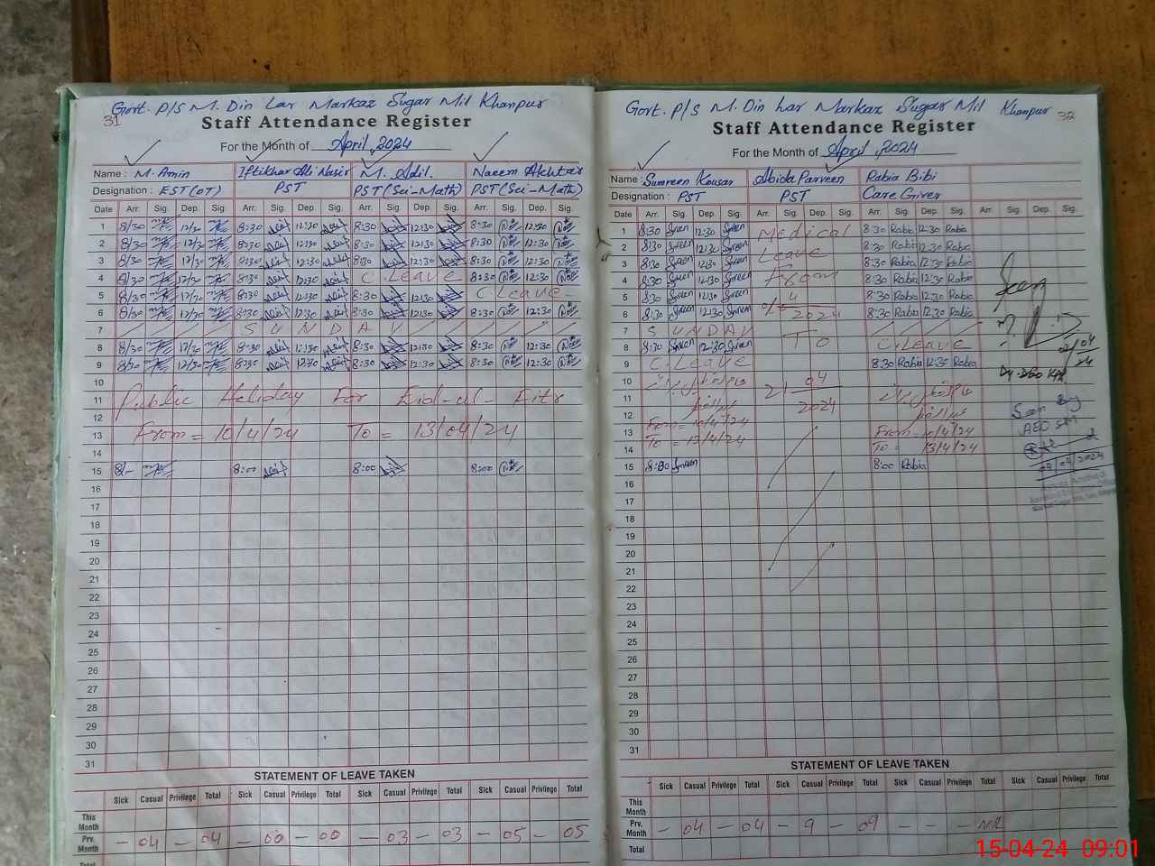 | Leave | Duty | Absent | Maternity | Medical | Ex- Pak |