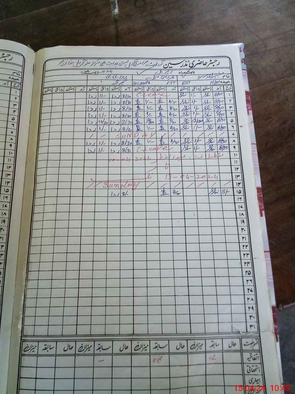 | CNIC | Full Name | Designation | R/C | Absence During Last Calender Month |