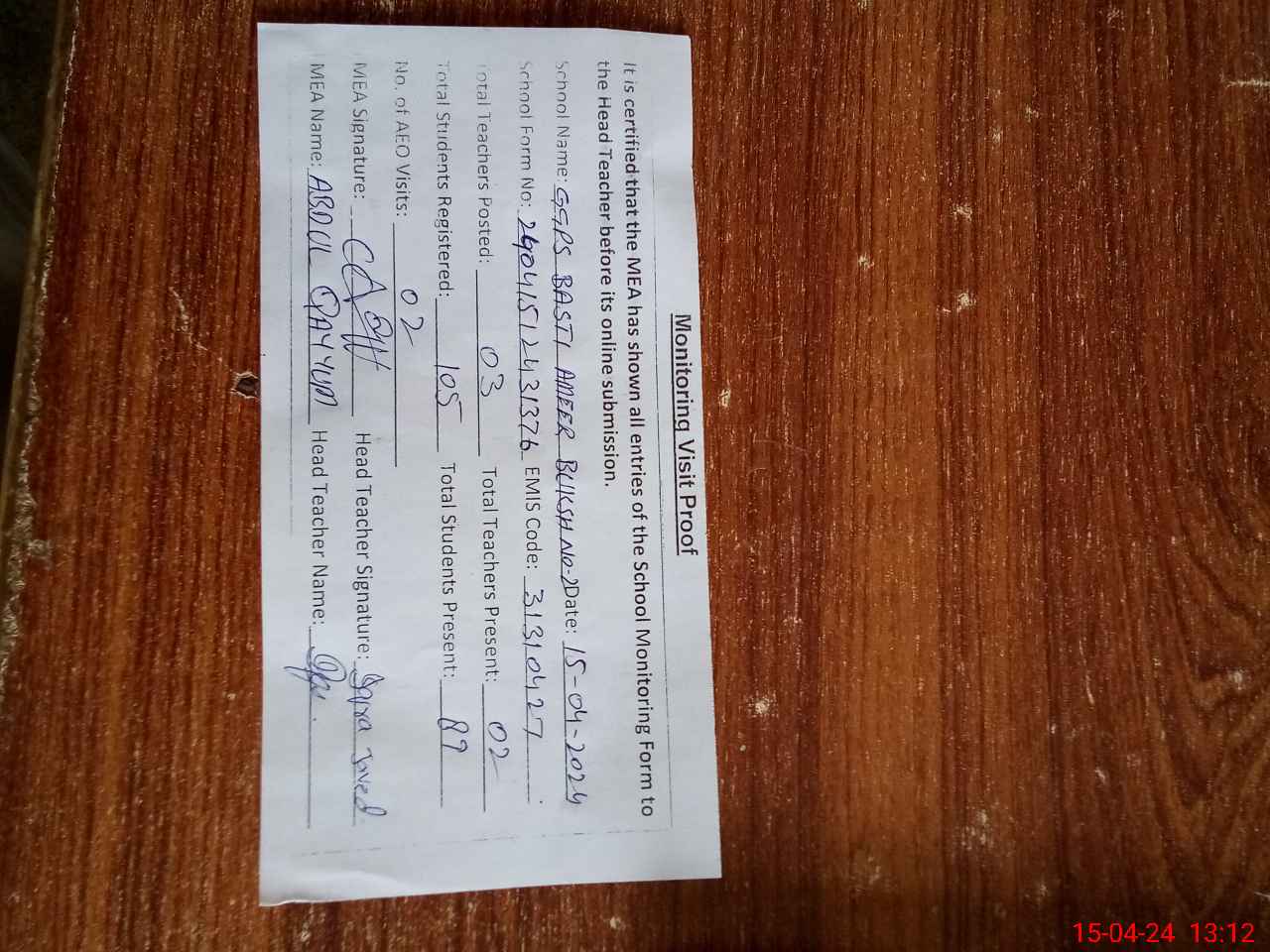 | EMIS Code: 31310427 | Name of School: GGPS BASTI AMEER BUX NO. 2 | |||