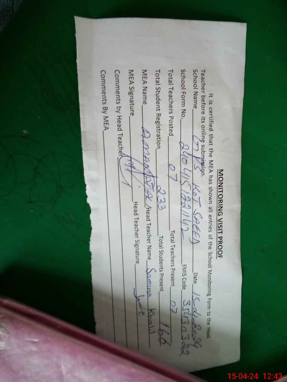 | EMIS Code: 35430322 | Name of School: GPS KOT SAEED | |||