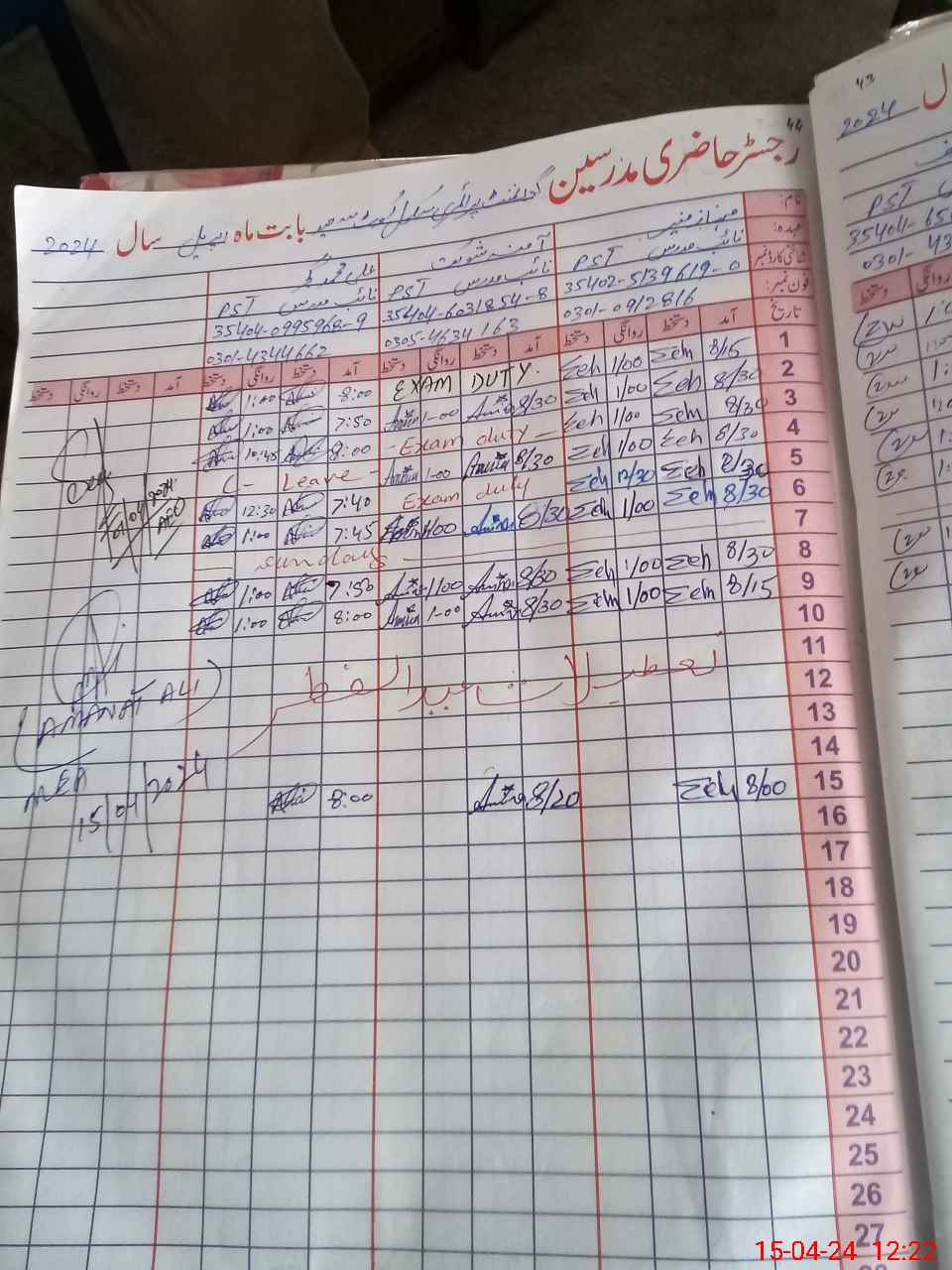 | Name: Sa**** Kh**** Designation: (School Headmaster's/Headmistress's) PST Phone/Cell Number: 03**** |