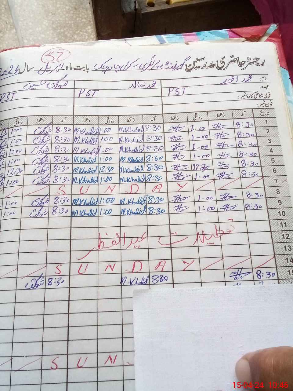 | Name: MU**** AN**** Designation: (School Headmaster's/Headmistress's) PST Phone/Cell Number: 03**** |