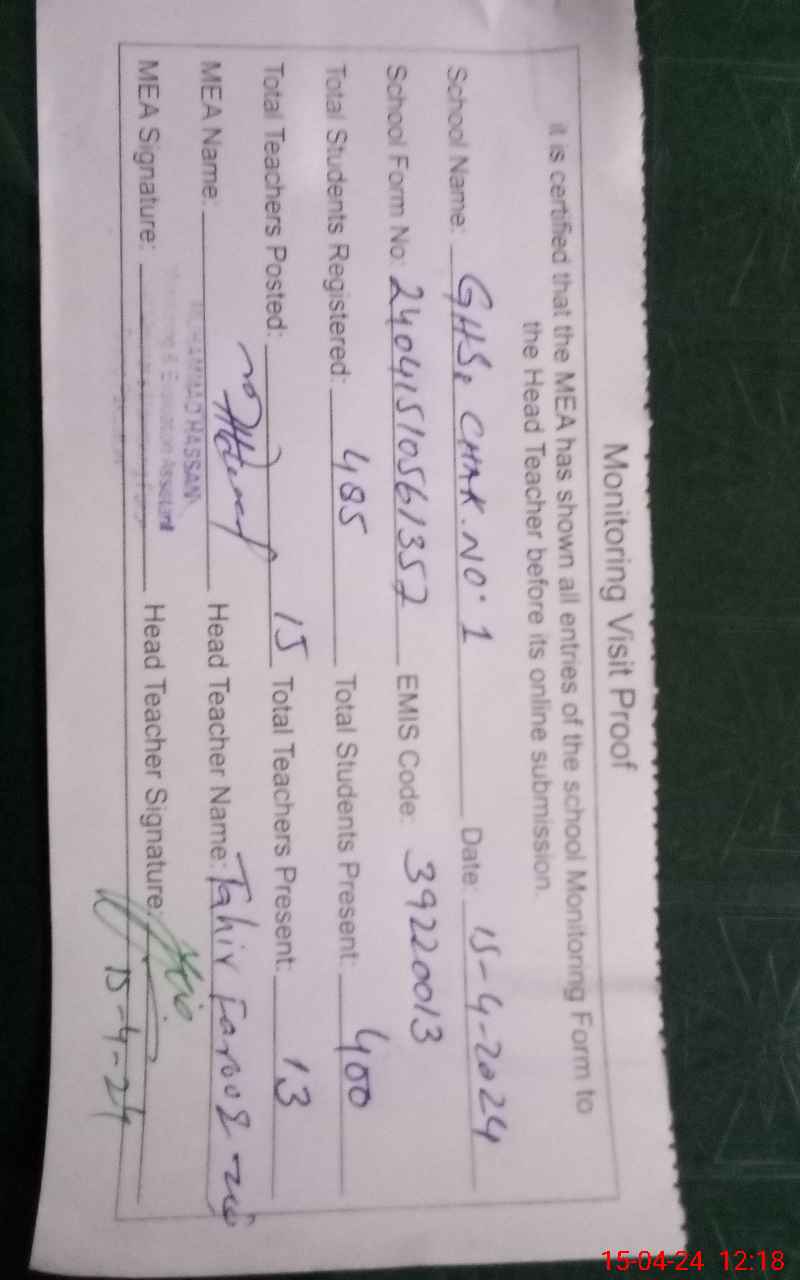 | EMIS Code: 39220013 | Name of School: GHS 1-EB | |||