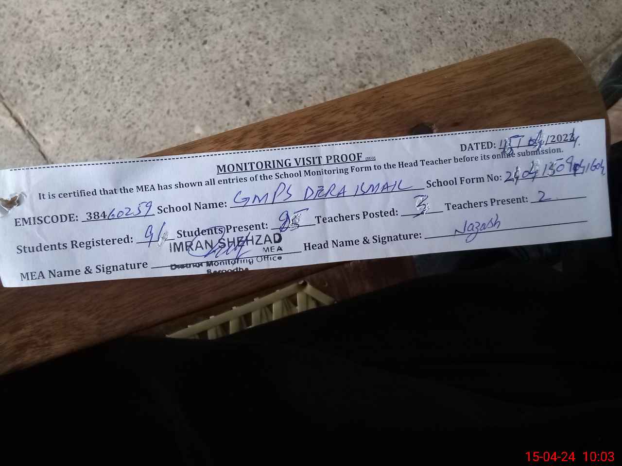 | EMIS Code: 38460259 | Name of School: GMPS DERA ISMAIL KA | |||