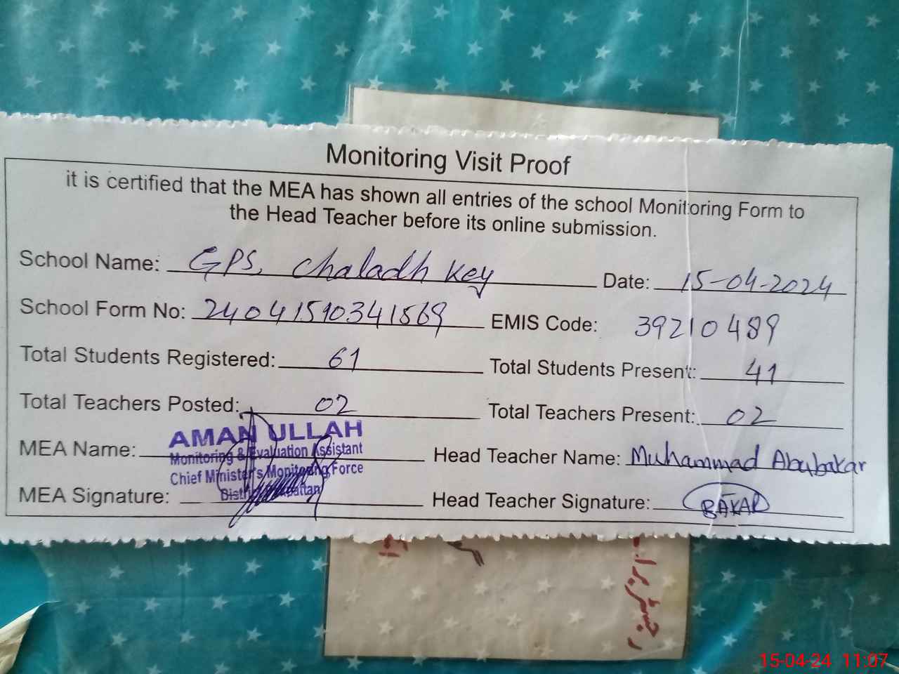 | EMIS Code: 39210489 | Name of School: GPS CHALADH KEY PO PAKPATTAN | |||