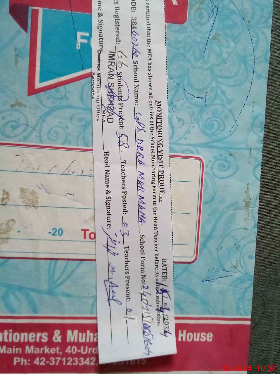 | EMIS Code: 38460260 | Name of School: GPS DERA MERMANA | |||
