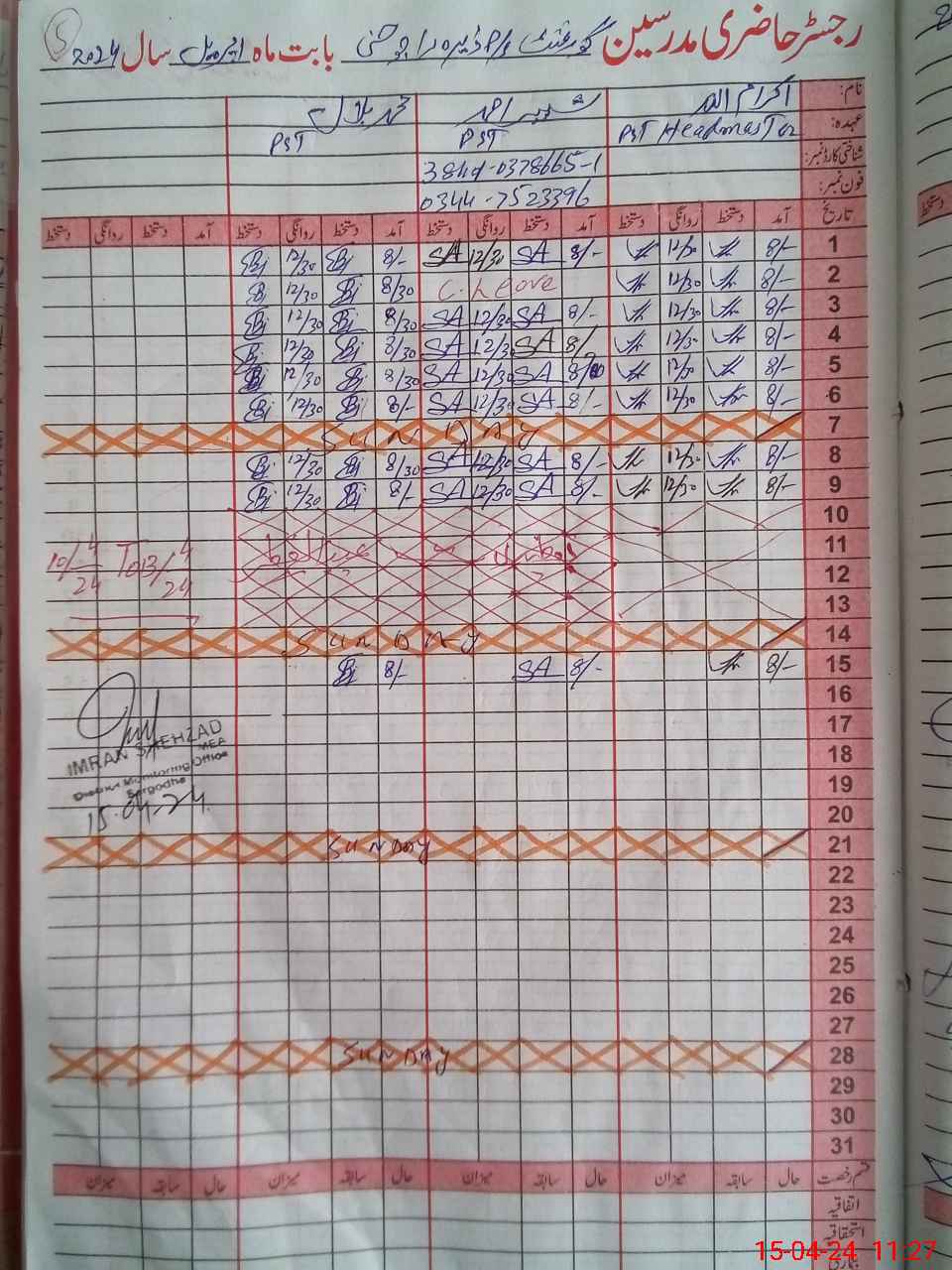 | Name: IK**** UL**** Designation: (School Headmaster's/Headmistress's) PST Phone/Cell Number: 03**** |