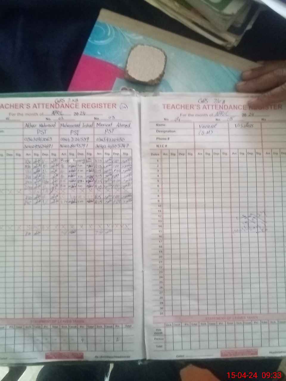 | Name: AT**** MA**** Designation: (School Headmaster's/Headmistress's) PST Phone/Cell Number: 03**** |