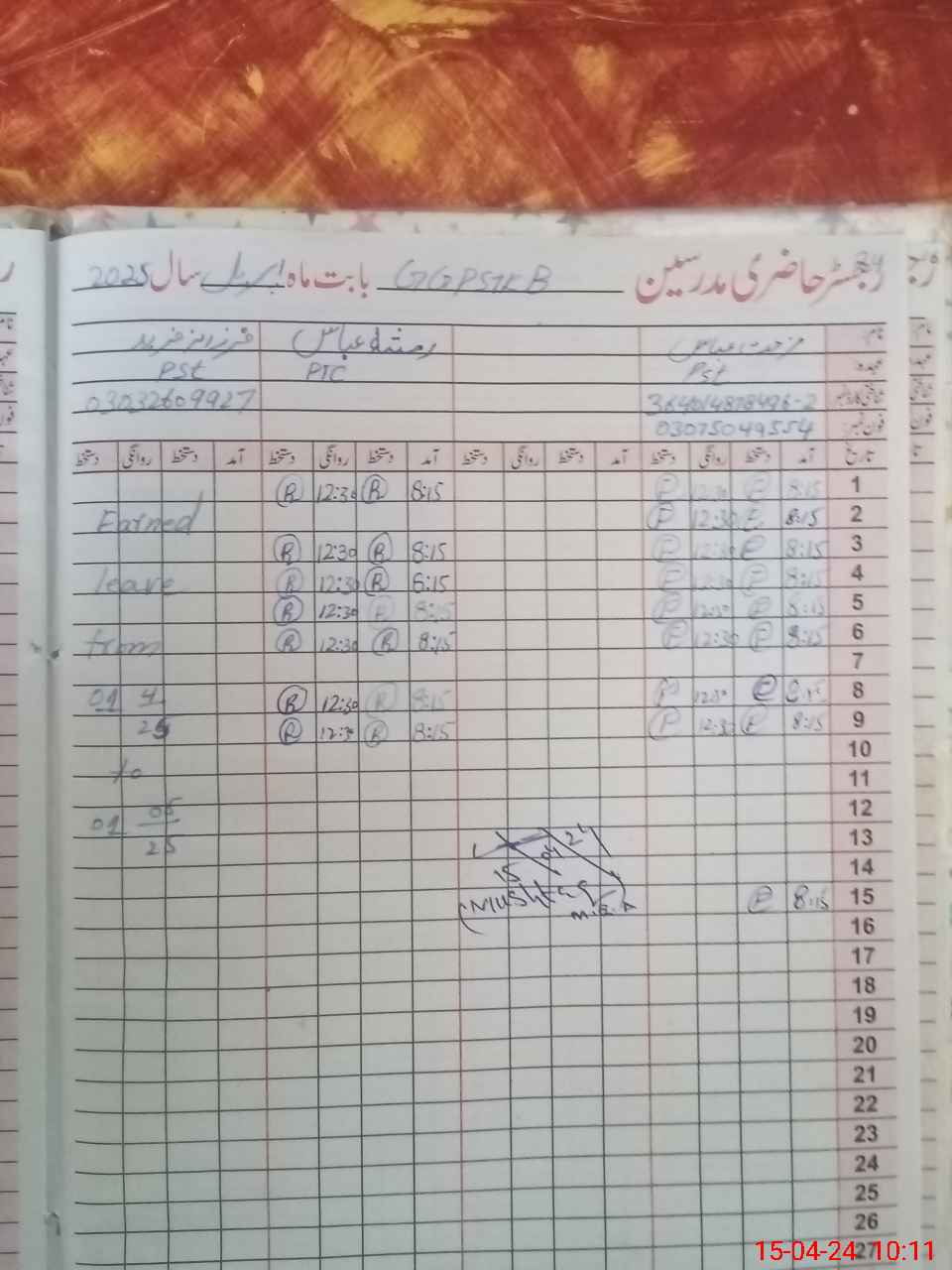| CNIC | Full Name | Designation | R/C | Absence During Last Calender Month |