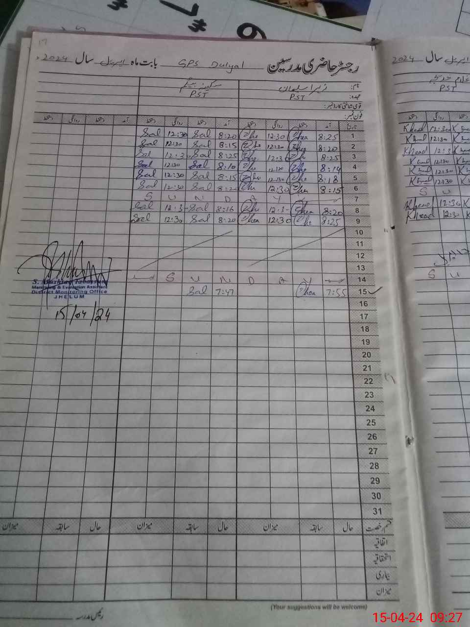 | Monitoring Date: 15-04-2024 | Start Time: 15-04-2024 08:49 AM | End Time: 15-04-2024 09:31 AM | Name of MEA: Sh**** Mu**** Ta**** | |