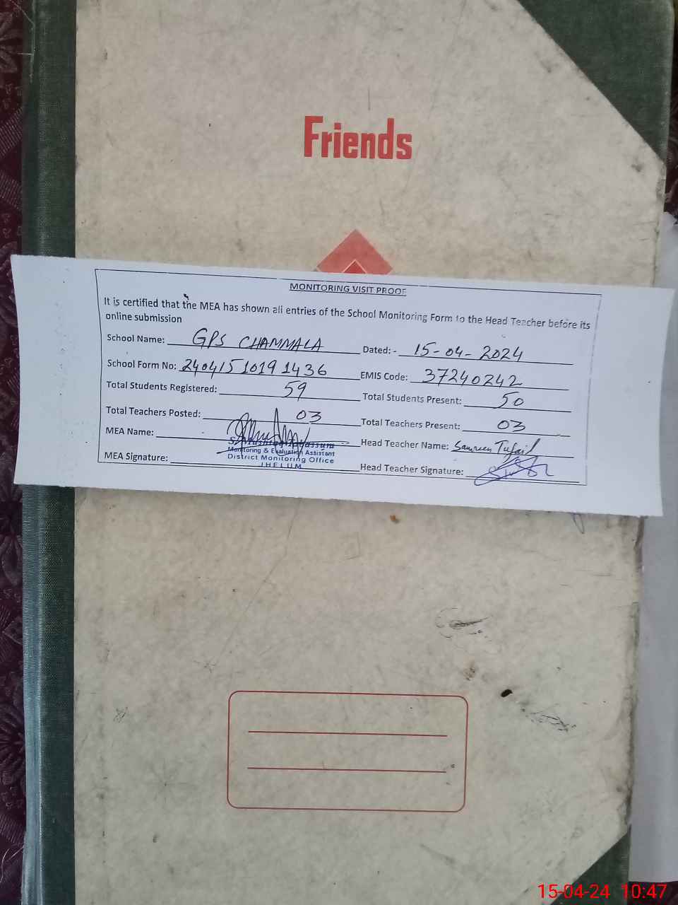 | EMIS Code: 37240242 | Name of School: GPS CHAMMALA | |||