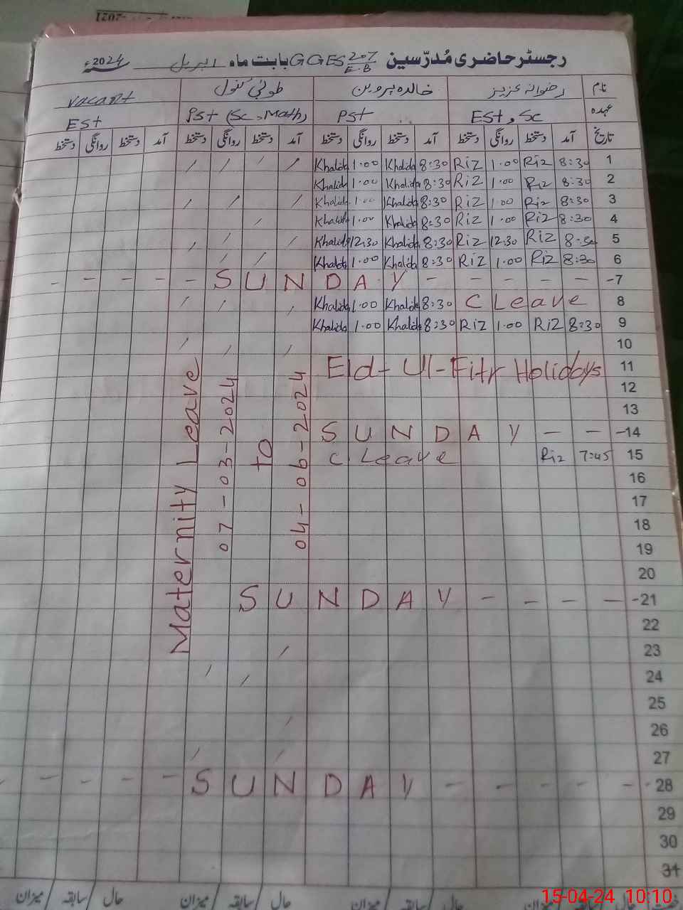 | 36**** | Kh**** Pa**** | PST | Regular | 2 | 0 | 0 | 0 | 0 | 0 | 0 | 0 | 2 | Casual |