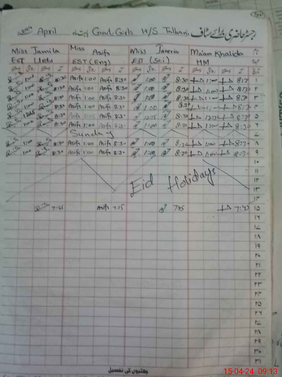 | Name: Kh**** Ha**** Designation: (School Headmaster's/Headmistress's) Est Genral Phone/Cell Number: 03**** |