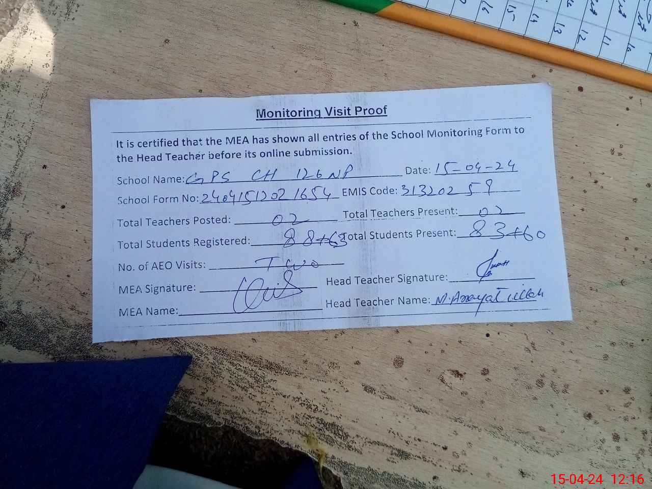 | EMIS Code: 31320259 | Name of School: GPS CHAK 126 NP | |||