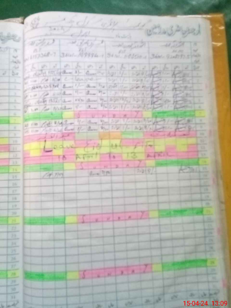 | Leave | Duty | Absent | Maternity | Medical | Ex- Pak |
