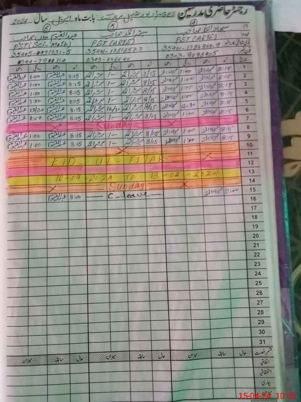| Name: IM**** AH**** Designation: (School Headmaster's/Headmistress's) SST SCI Phone/Cell Number: 03**** |