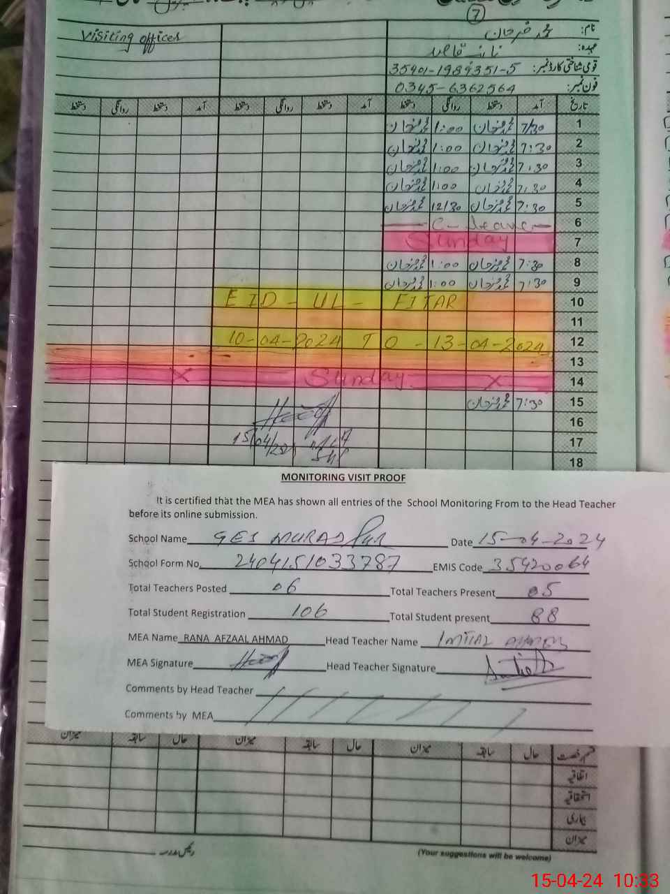 | EMIS Code: 35420064 | Name of School: GES MURAD PUR | |||