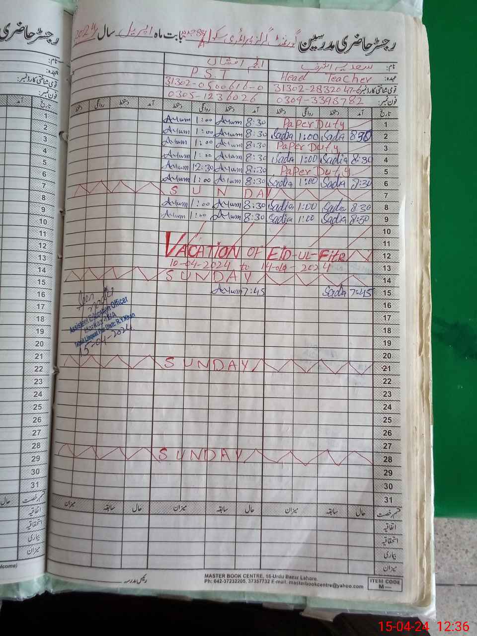 | Name: Sa**** As**** Designation: (School Headmaster's/Headmistress's) PST Phone/Cell Number: 03**** |