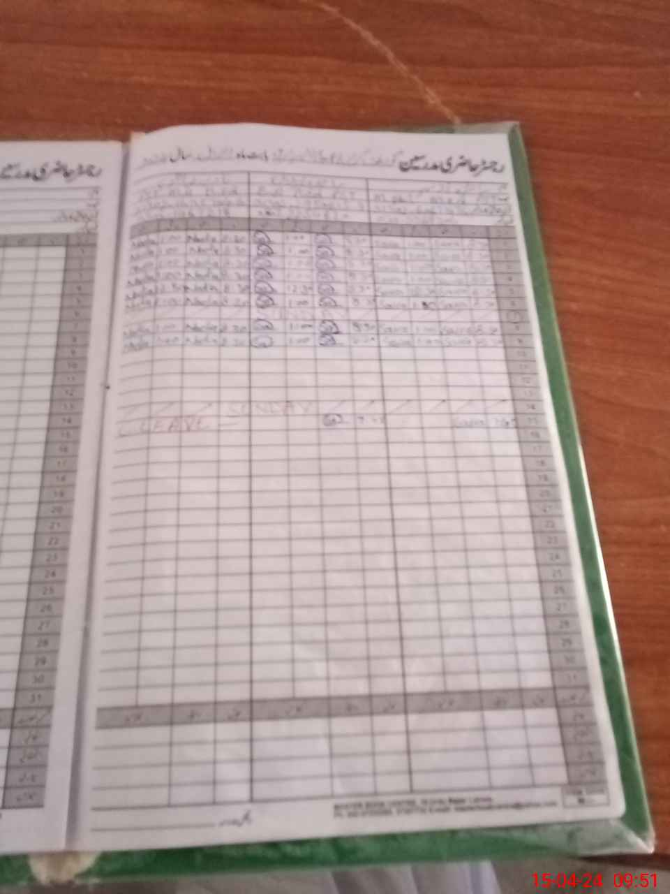 | CNIC | Full Name | Designation | R/C | Absence During Last Calender Month |