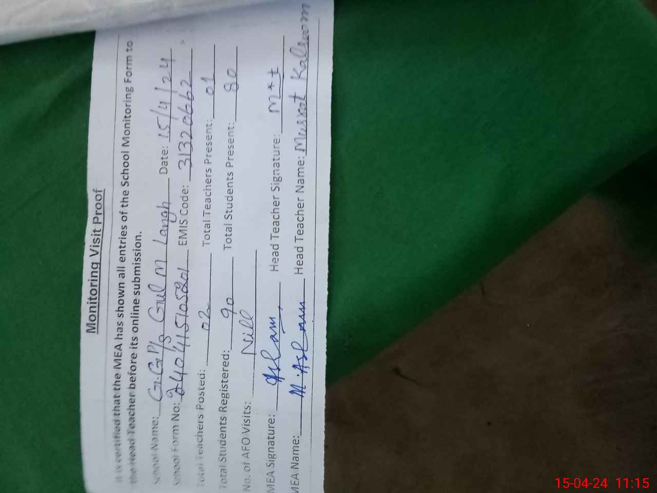 | EMIS Code: 31320662 | Name of School: GGPS GUL MUHAMMAD LANGHA | |||