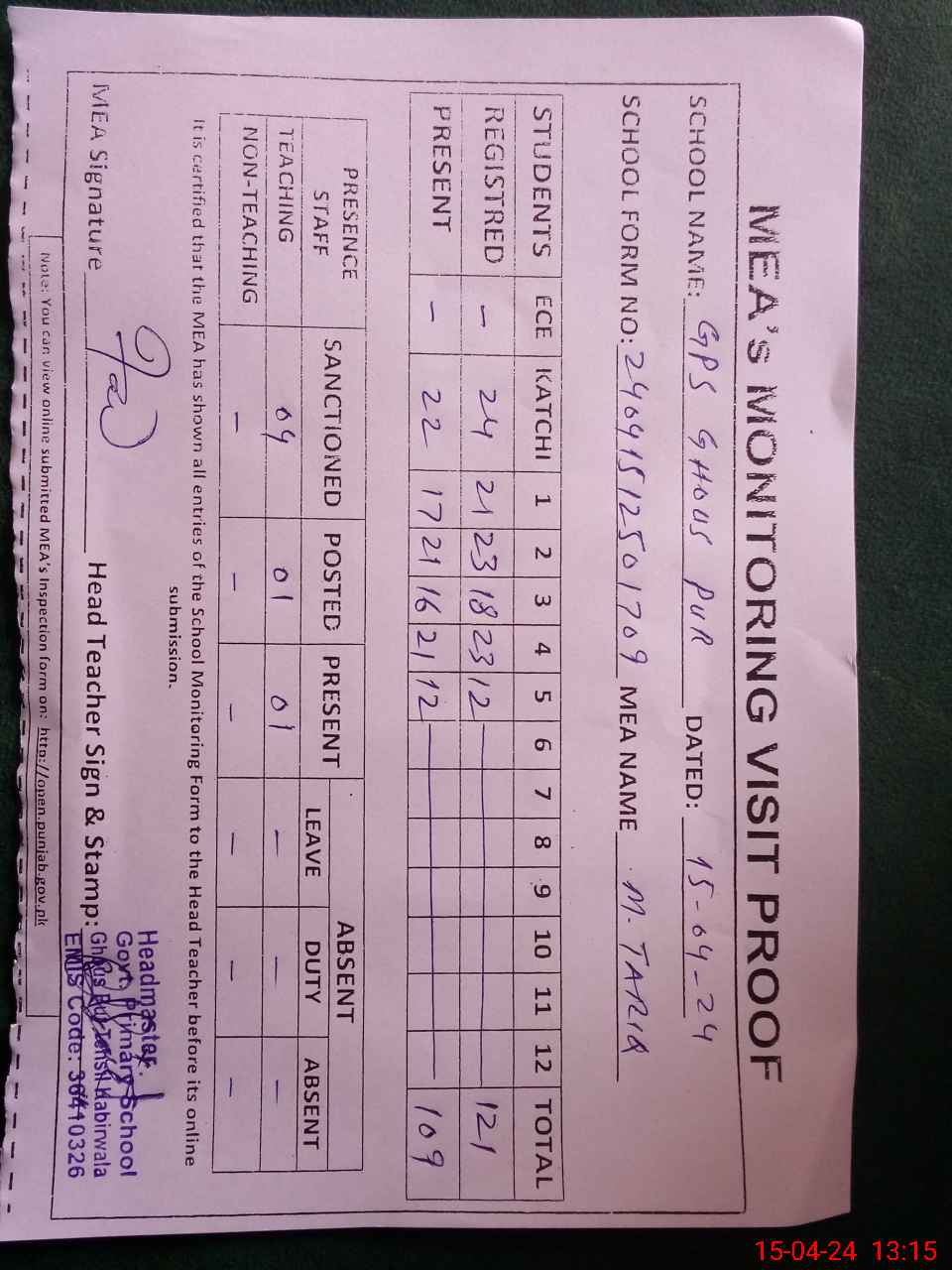 | EMIS Code: 36410326 | Name of School: GPS GHOUS PUR, P/O SARDAR PUR, NAWAN SHEHR | |||