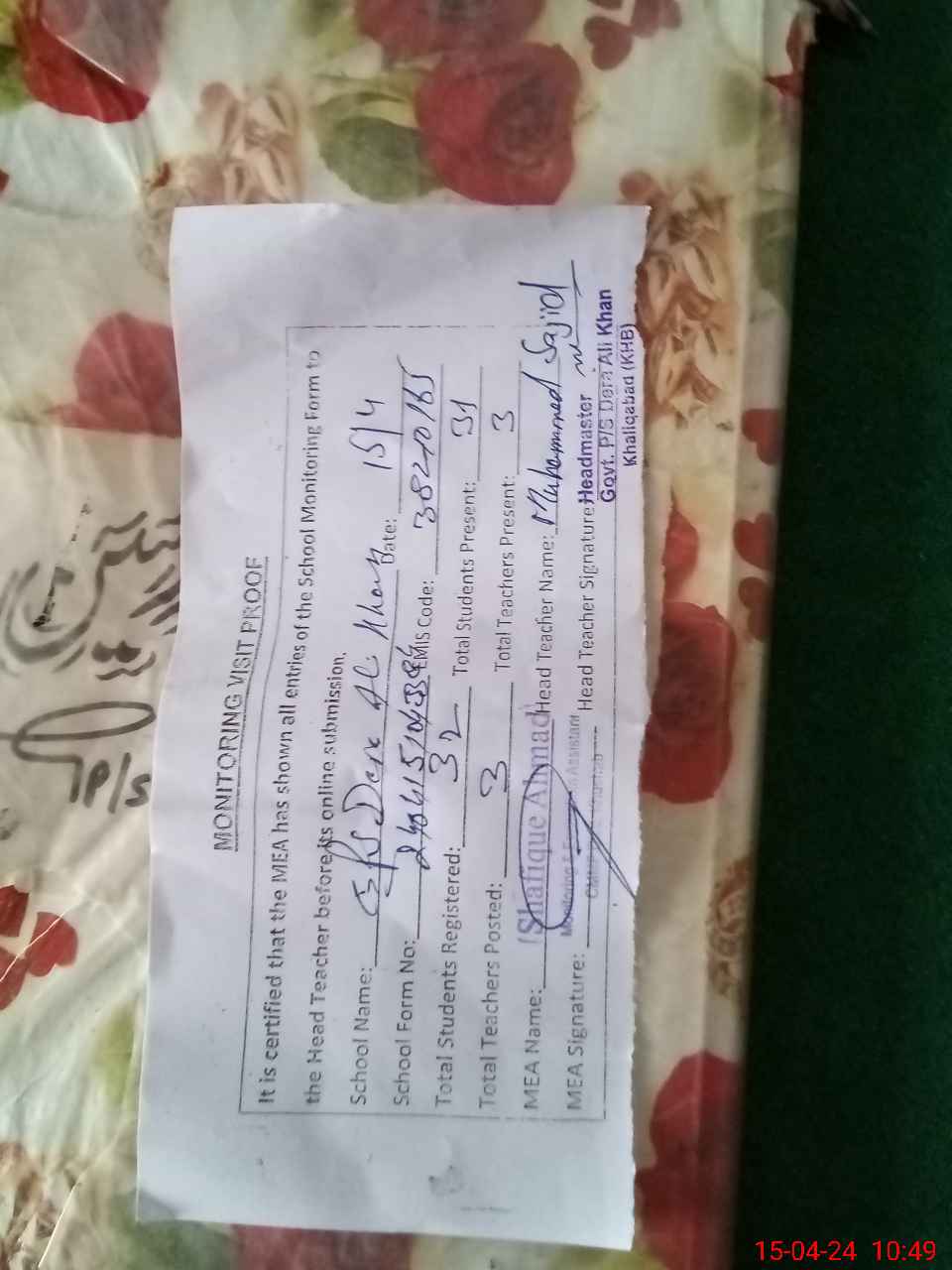 | EMIS Code: 38210165 | Name of School: GPS DERA ALI KHAN | |||