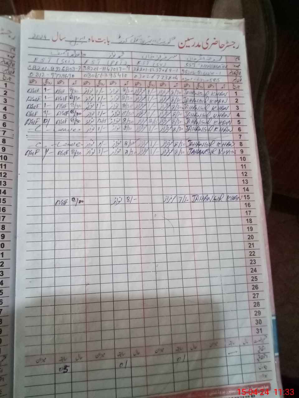 | Name: Mu**** Ja**** Kh**** Designation: (School Headmaster's/Headmistress's) Sst Phone/Cell Number: 03**** |