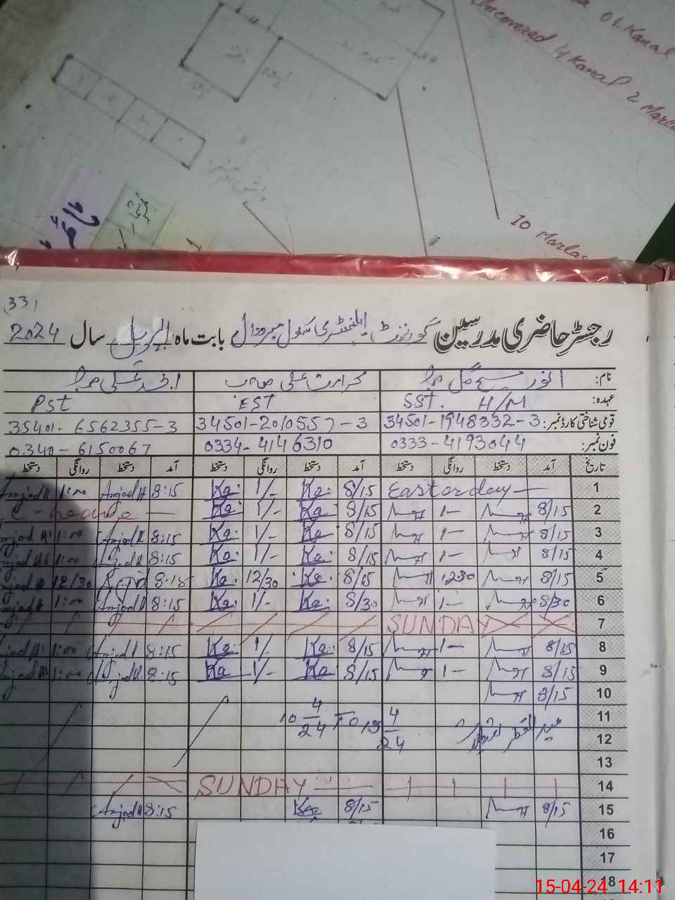 | CNIC | Full Name | Designation | R/C | Absence During Last Calender Month |