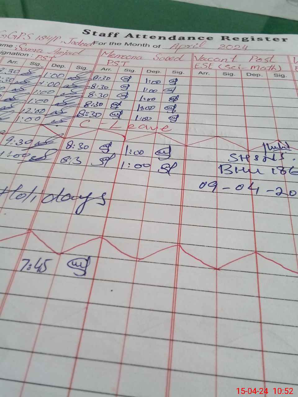 | CNIC | Full Name | Designation | R/C | Absence During Last Calender Month |