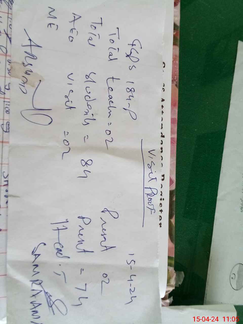 | Attendance Register | Head Teacher | MEA with School | Visit Proof |