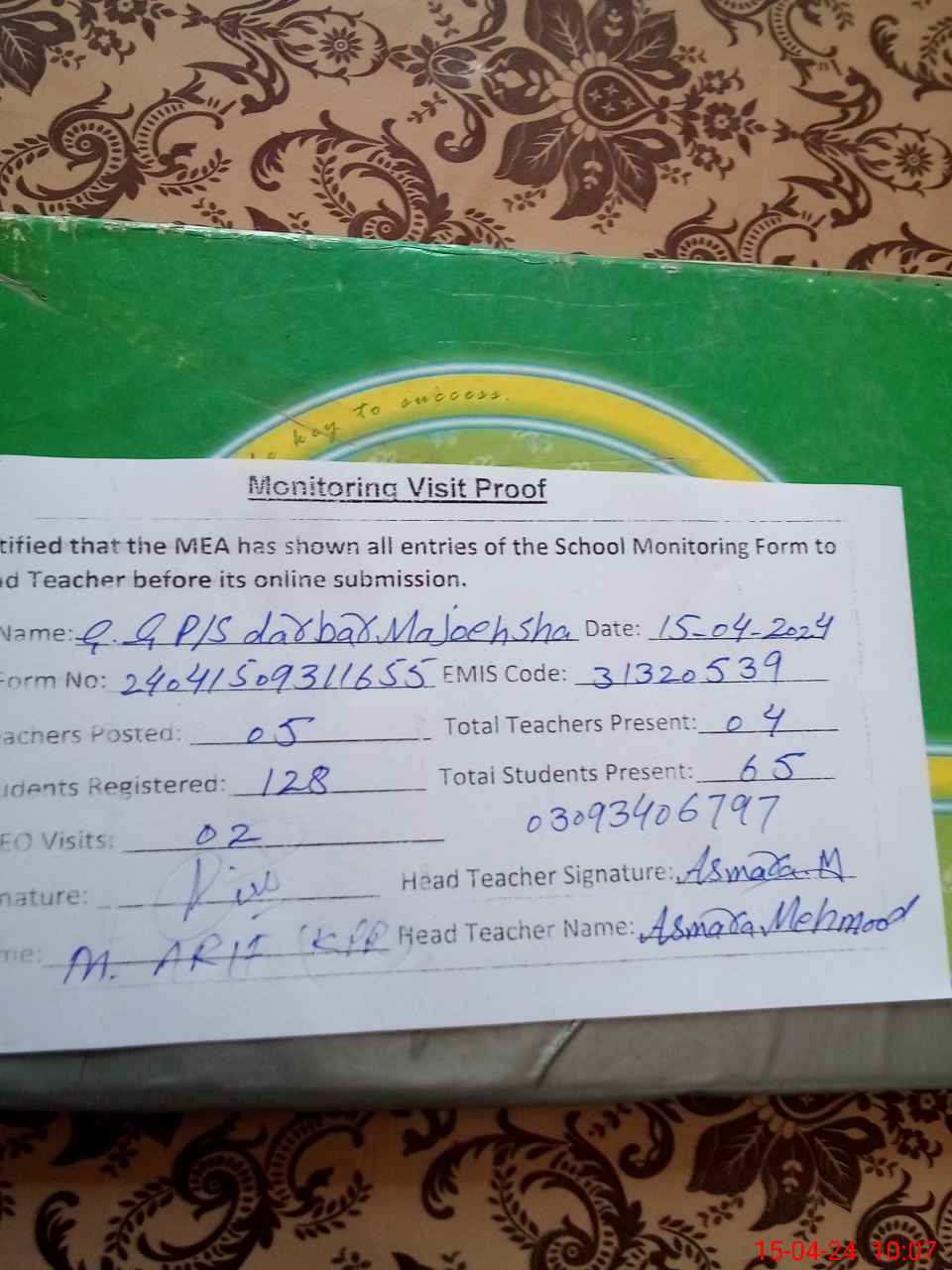 | EMIS Code: 31320539 | Name of School: GGPS DARBAR MAJEOH SHAH | |||