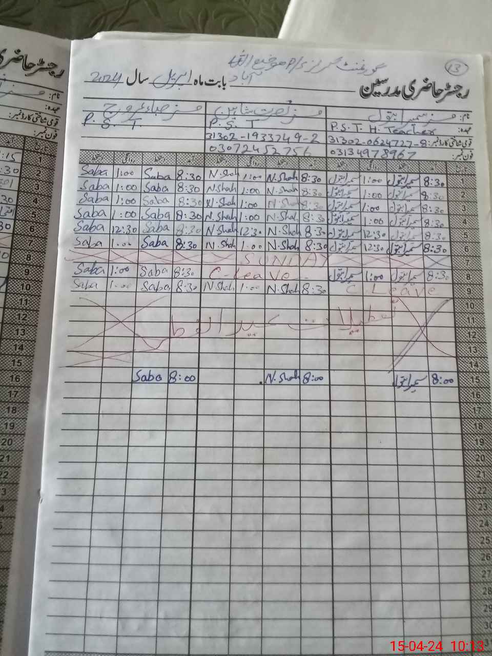 | Name: SU**** BA**** Designation: (School Headmaster's/Headmistress's) PST/PTC/JV Phone/Cell Number: 03**** |