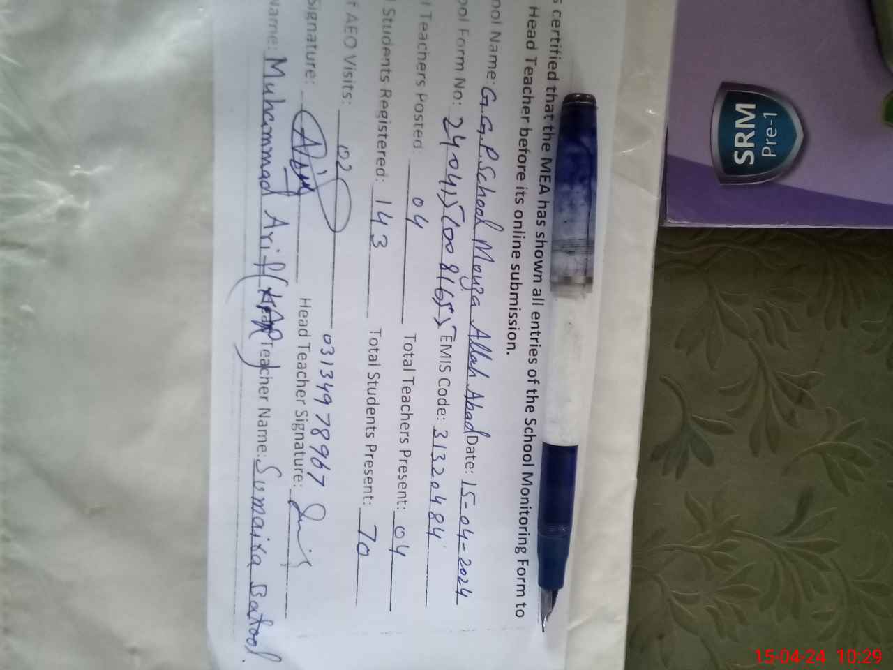 | EMIS Code: 31320484 | Name of School: GGPS MOUZA ALLAH ABAD | |||