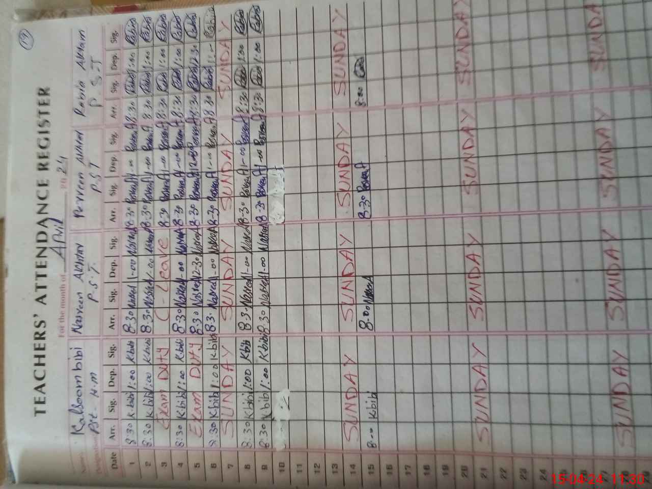 | CNIC | Full Name | Designation | R/C | Absence During Last Calender Month |