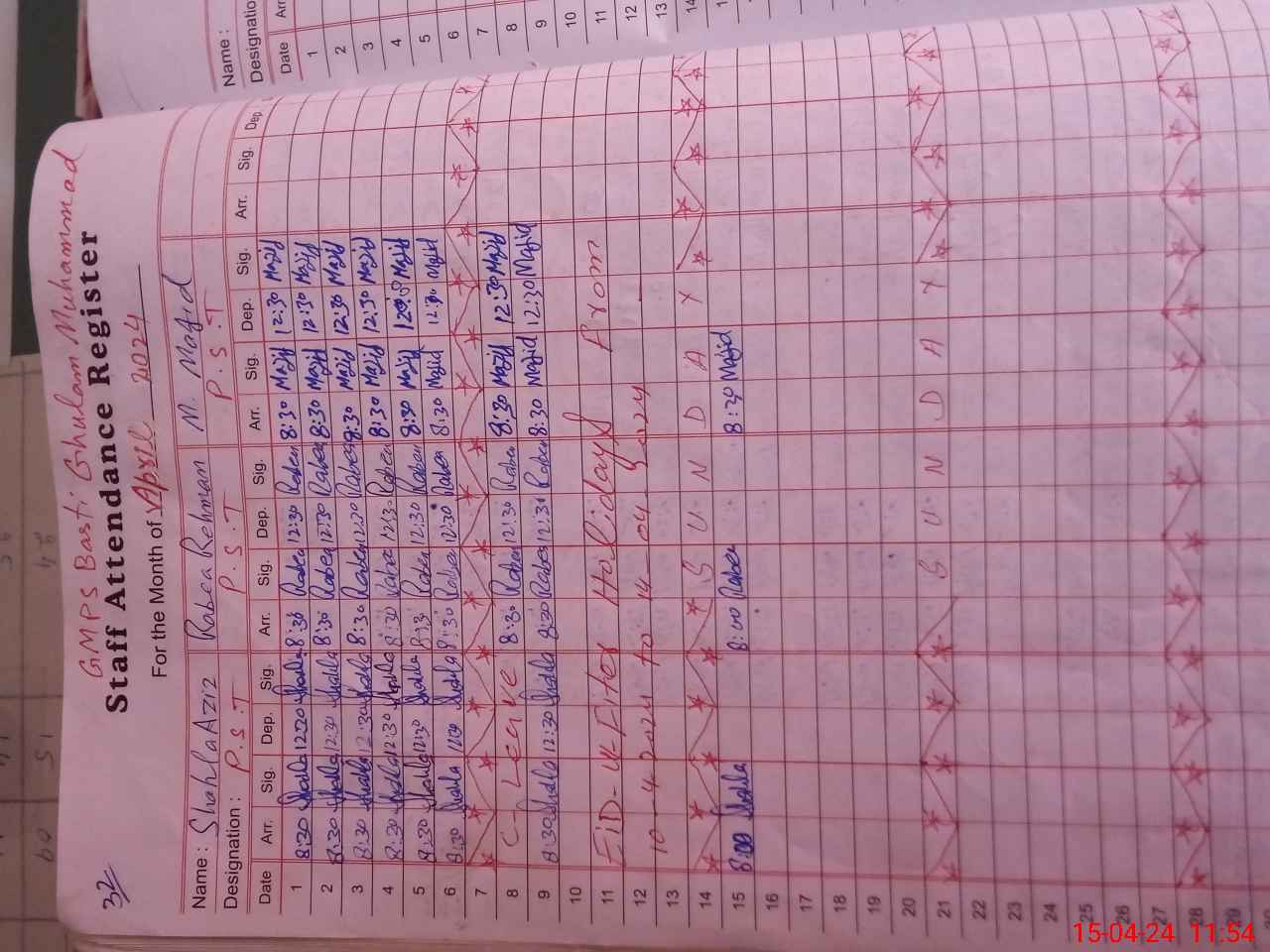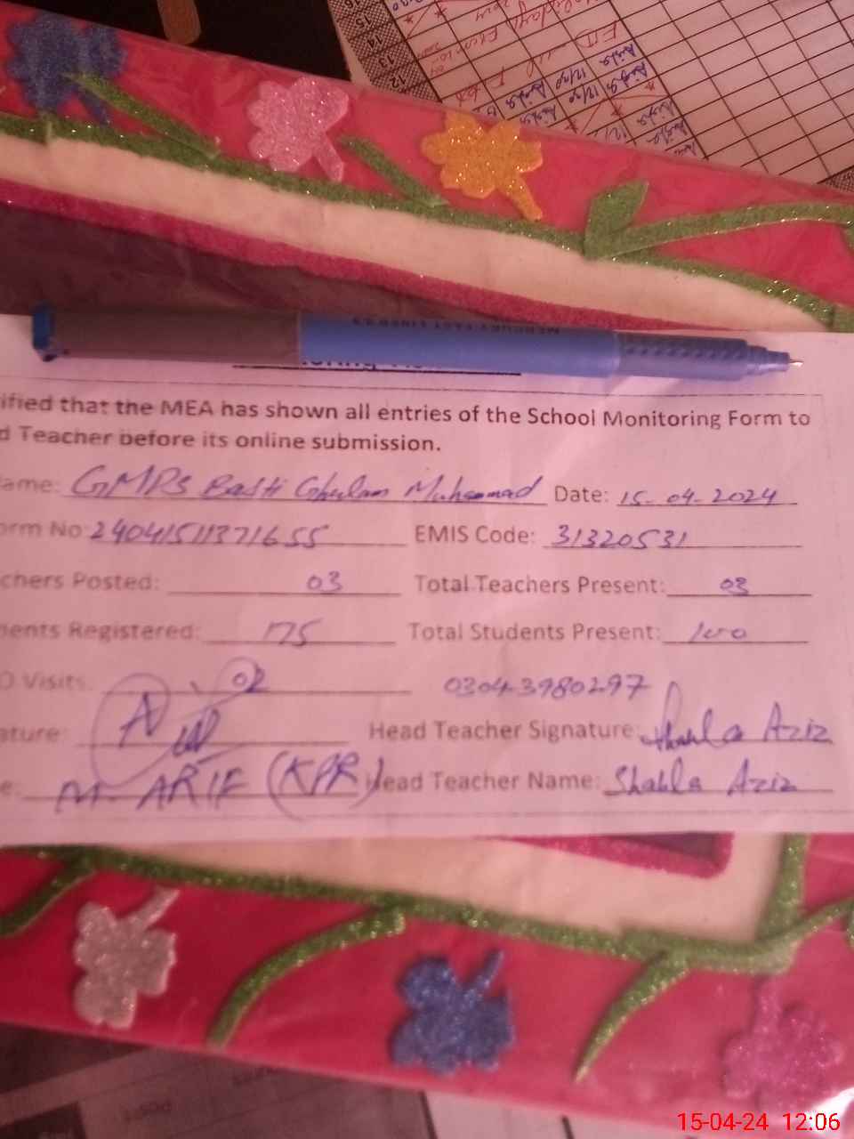 | Name: Sh**** Az**** Designation: (School Headmaster's/Headmistress's) PST Phone/Cell Number: 03**** |