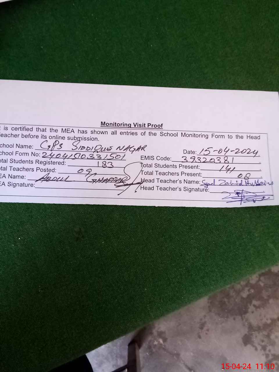 | EMIS Code: 39320381 | Name of School: GPS SIDDIQUE NAGAR | |||