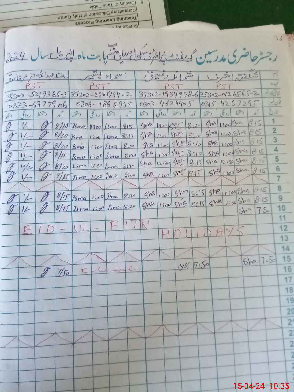 | Name: SY**** ZA**** HU**** SH**** Designation: (School Headmaster's/Headmistress's) PST Phone/Cell Number: 03**** |