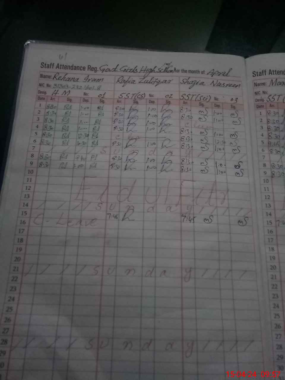 | 00**** | Na**** | 0 | 0 | 31 | 0 | 0 | 0 | 0 | 0 | 0 | Absent (Un-Authorized) | ||
