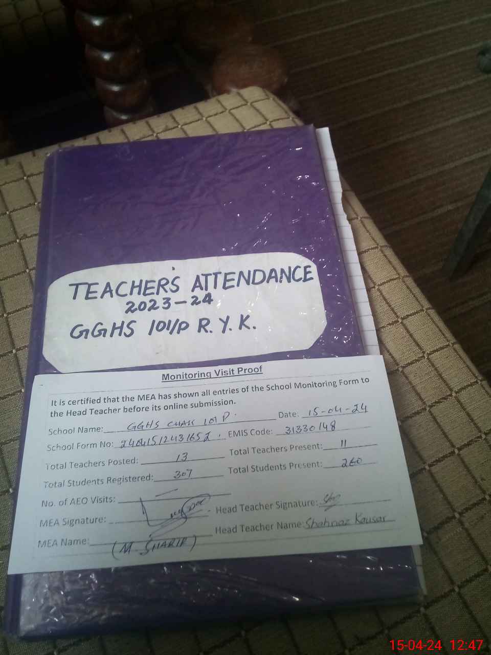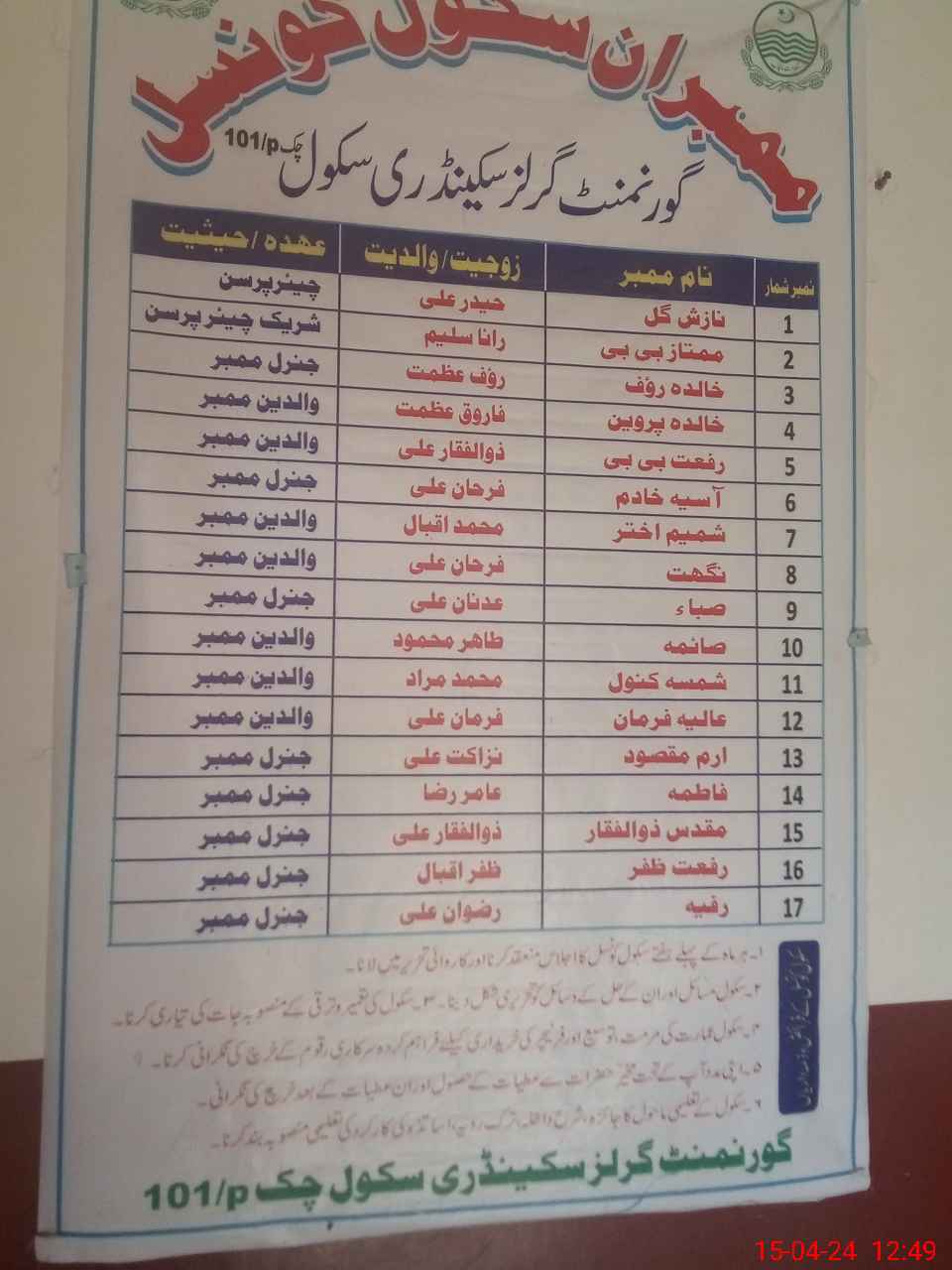 | EMIS Code: 31330148 | Name of School: GGHS CHAK NO. 101/P | |||