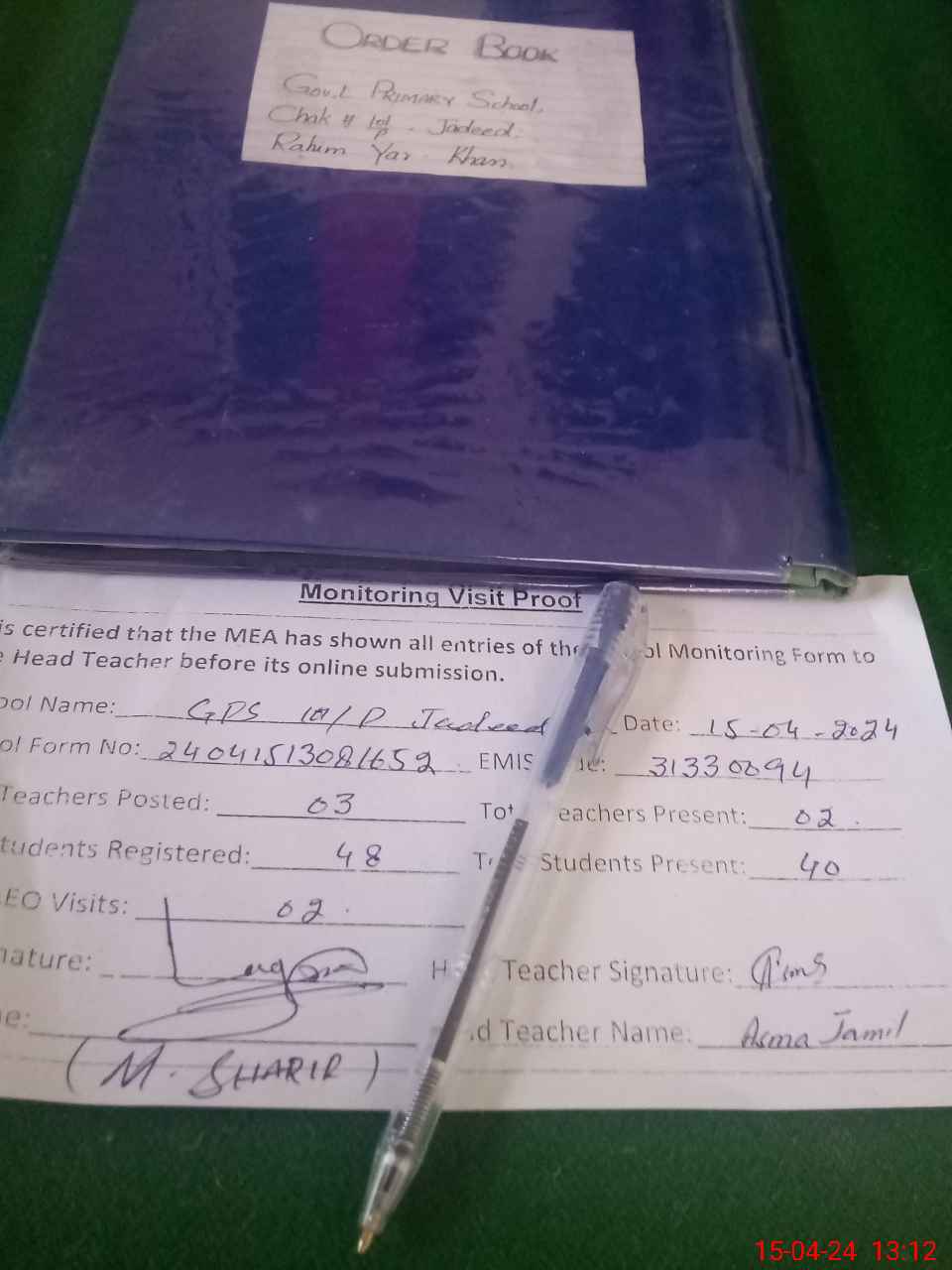 | EMIS Code: 31330094 | Name of School: GPS CHAK 101/P JADEED | |||