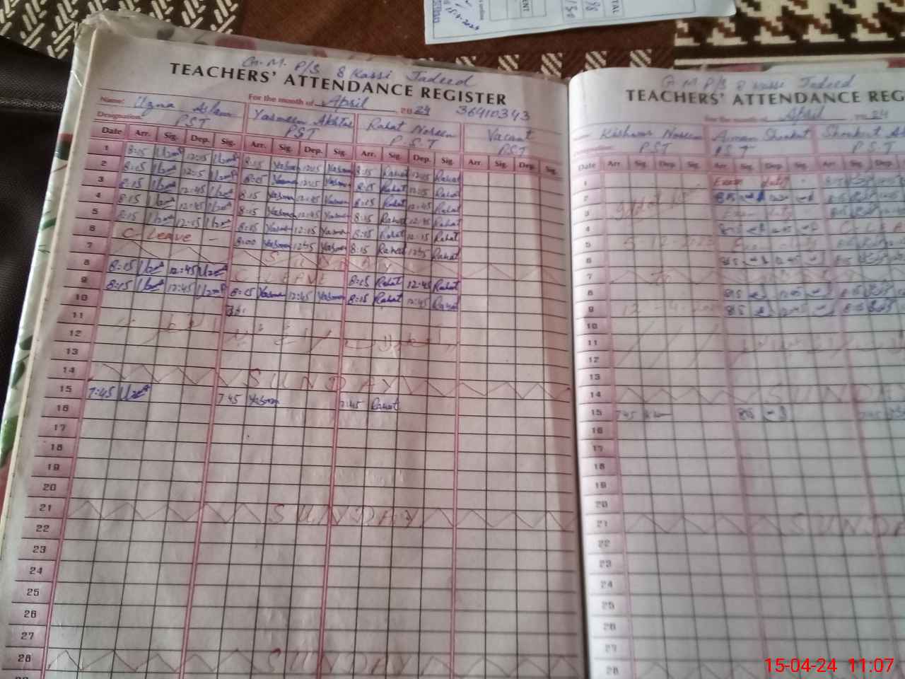 | Name: UZ**** AS**** Designation: (School Headmaster's/Headmistress's) PST Phone/Cell Number: 03**** |