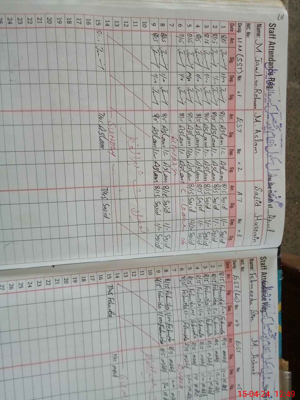 | CNIC | Full Name | Designation | R/C | Absence During Last Calender Month |
