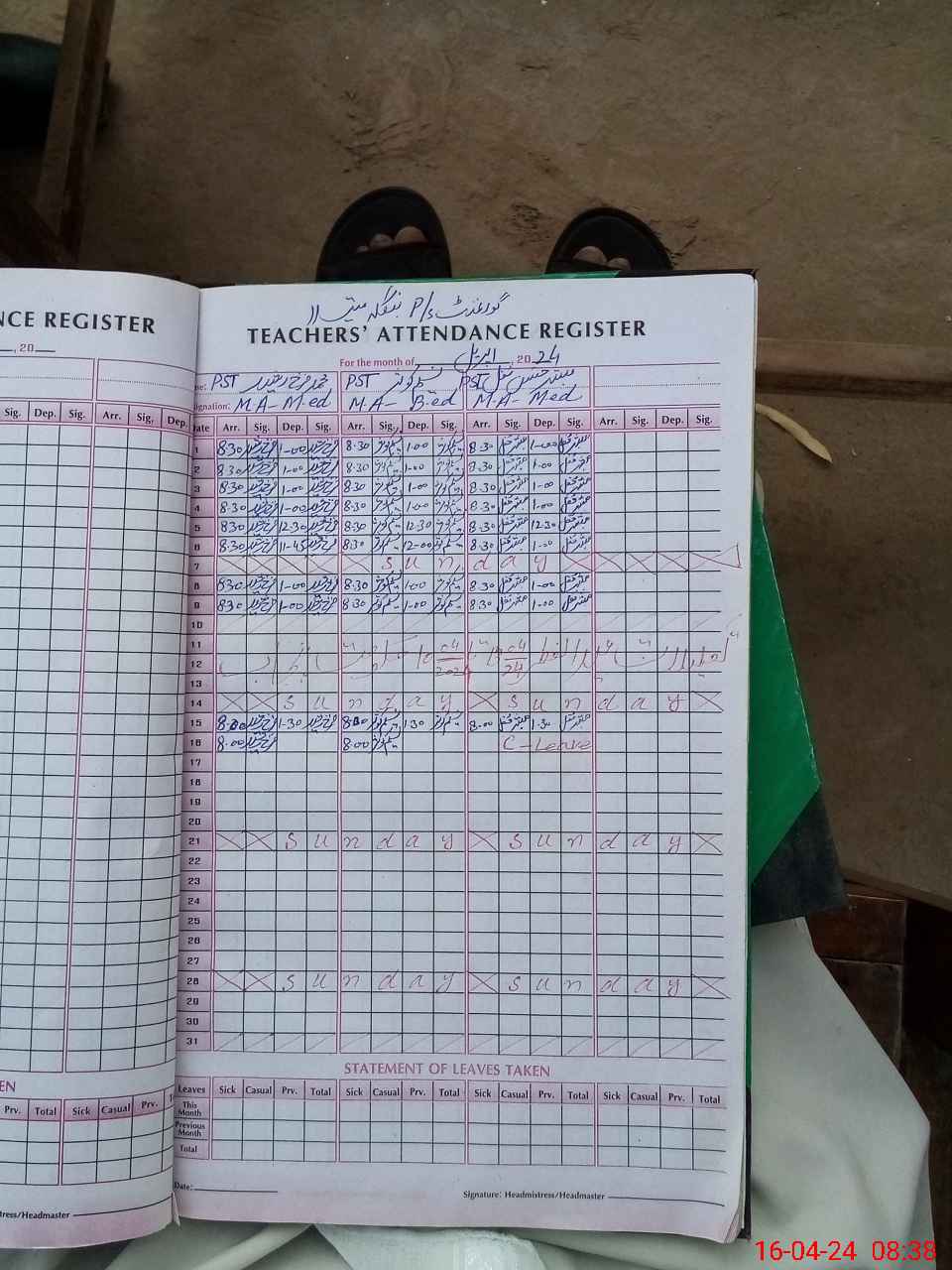 | Leave | Duty | Absent | Maternity | Medical | Ex- Pak |