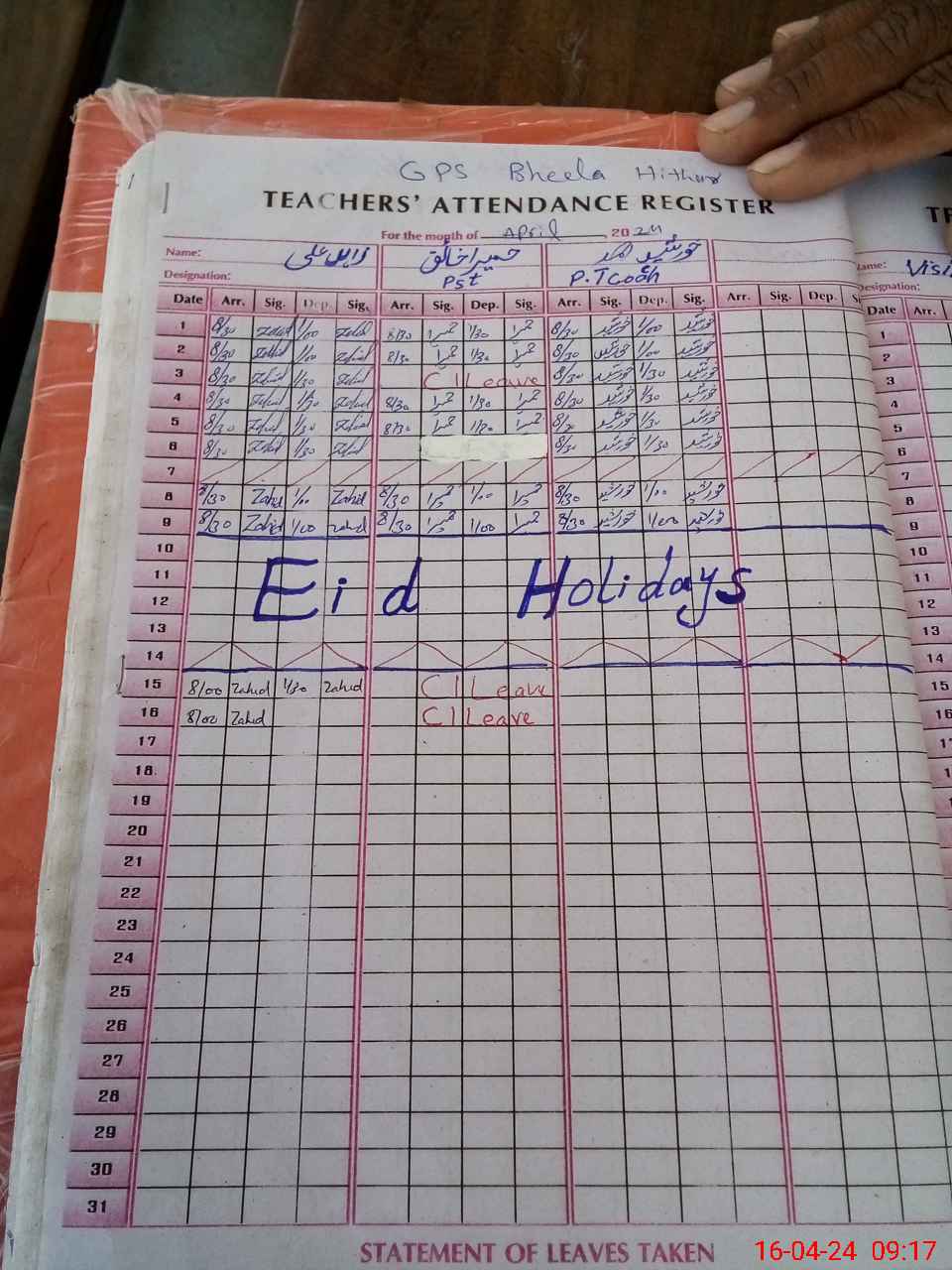 | Name: ZA**** AL**** Designation: (School Headmaster's/Headmistress's) PST Phone/Cell Number: 03**** |