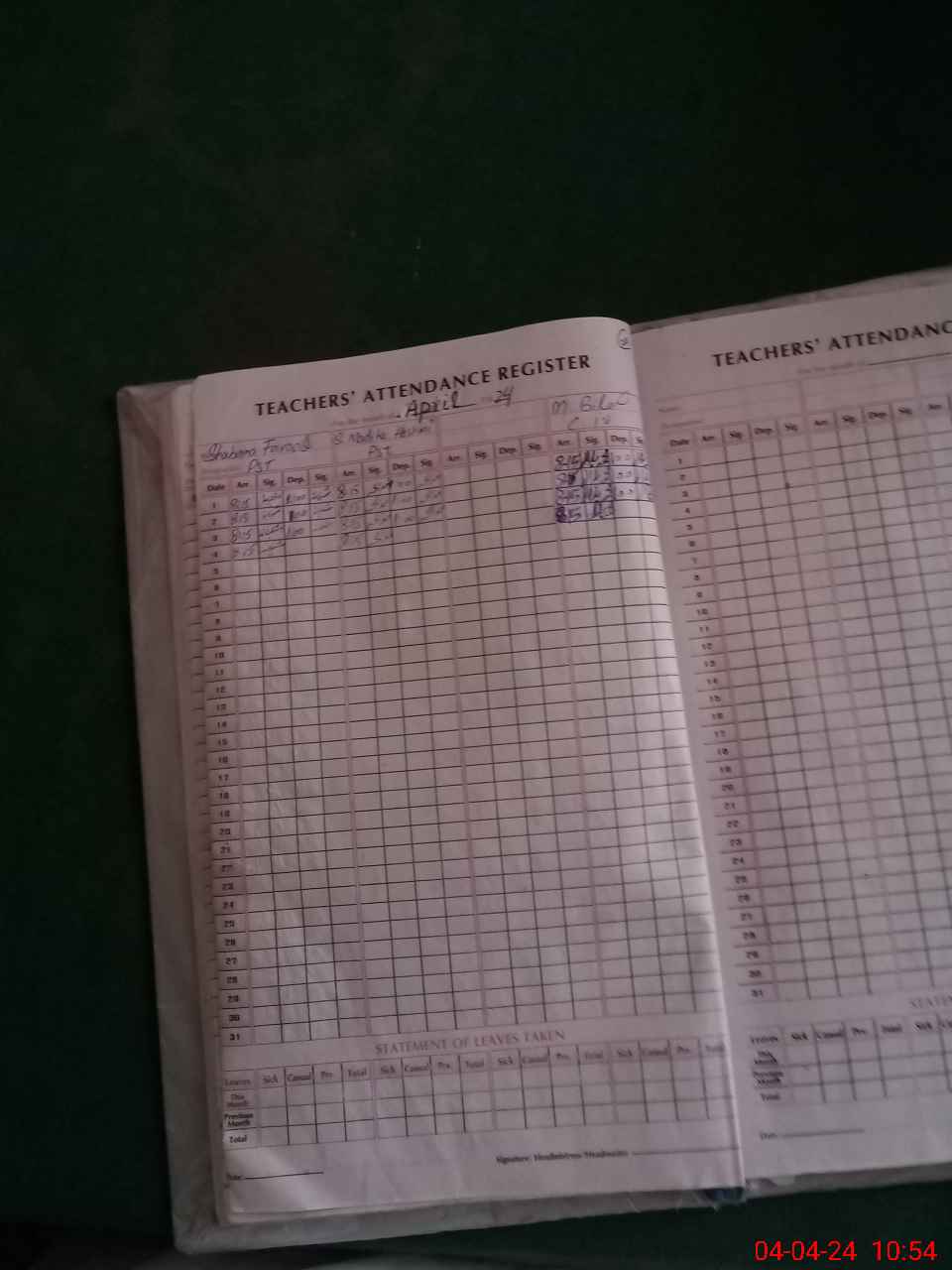 | Leave | Duty | Absent | Maternity | Medical | Ex- Pak |