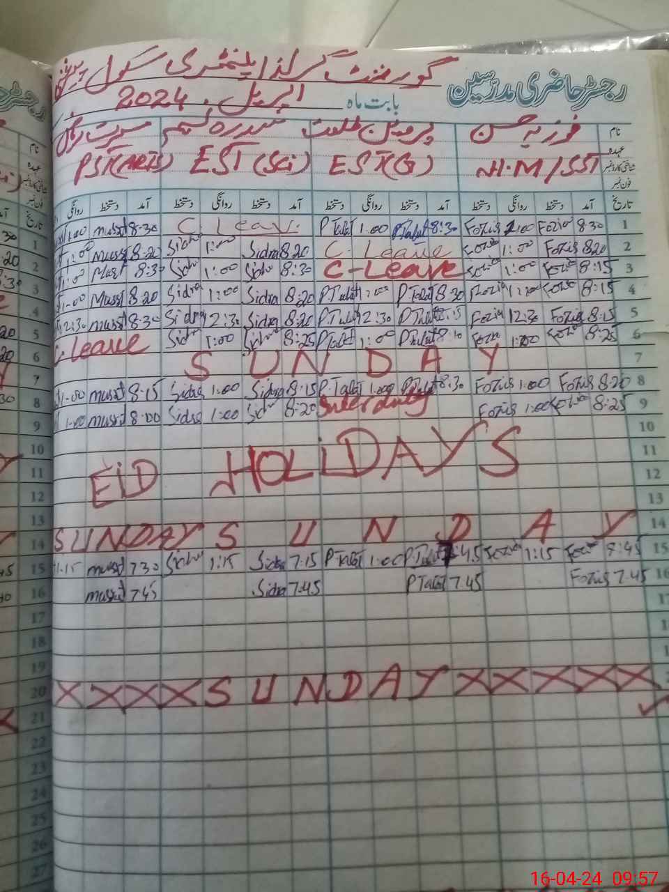 | Leave | Duty | Absent | Maternity | Medical | Ex- Pak |