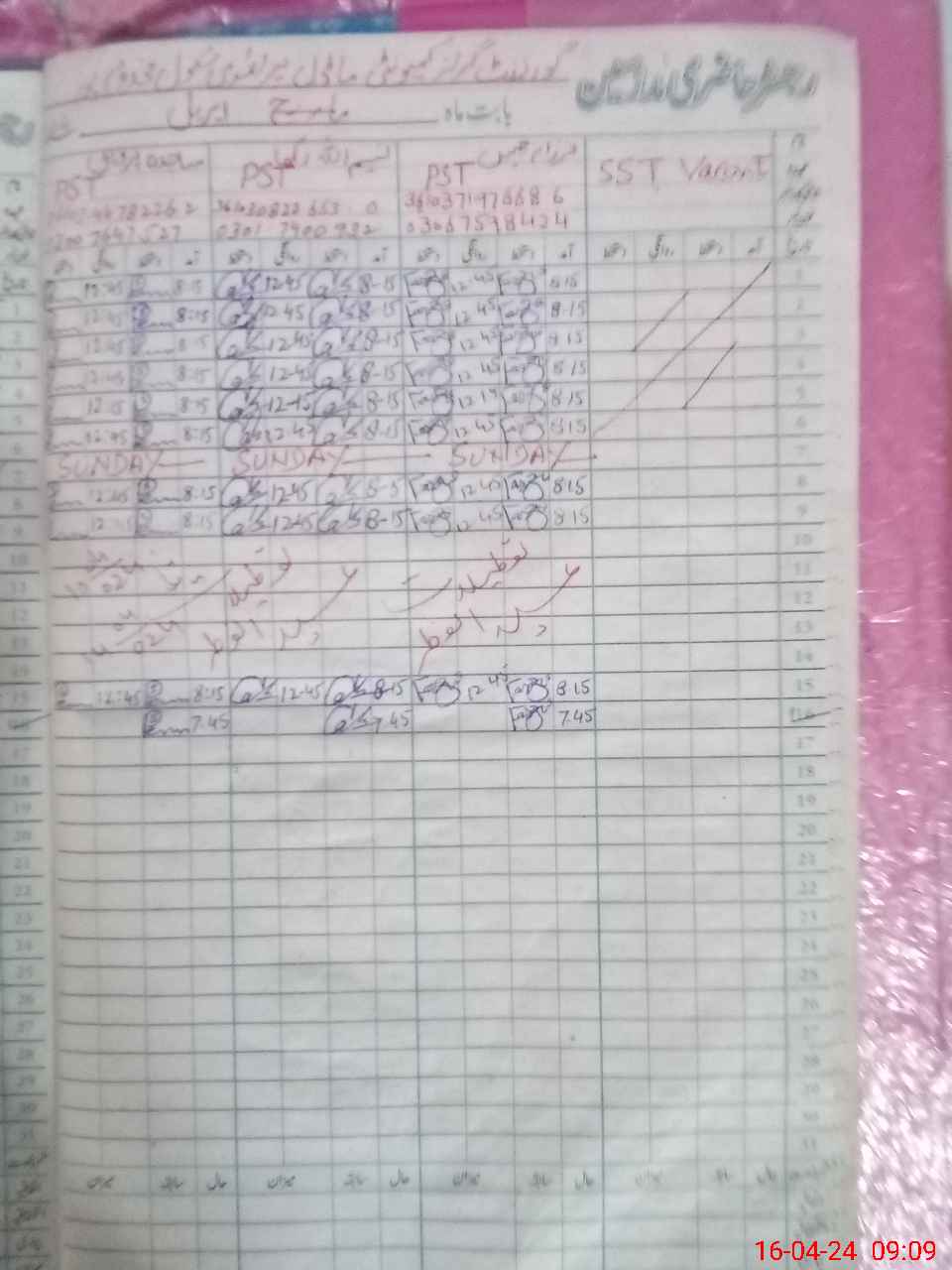 | Name: FA**** JA**** Designation: (School Headmaster's/Headmistress's) PST Phone/Cell Number: 03**** |