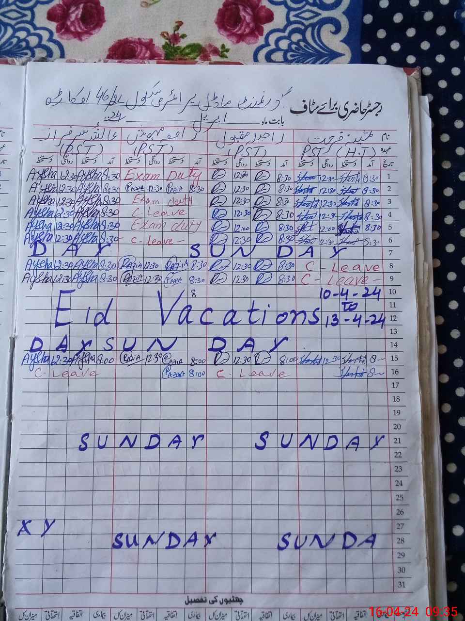 | Leave | Duty | Absent | Maternity | Medical | Ex- Pak |